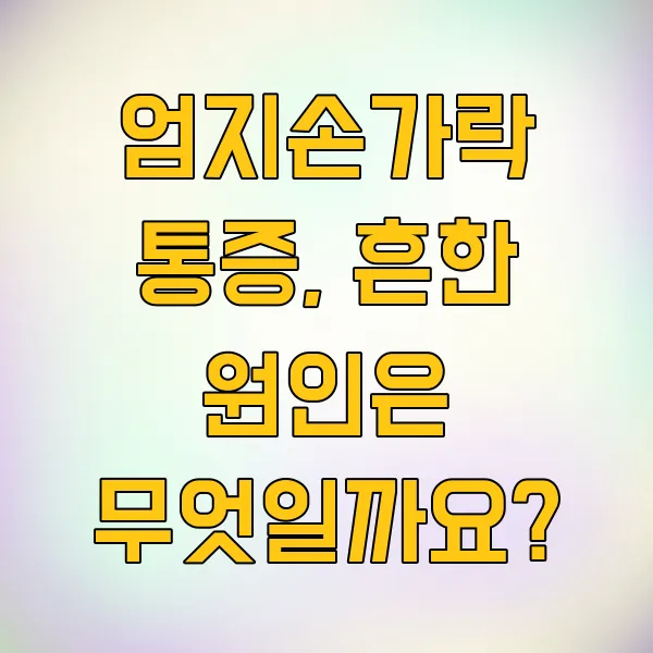 우리 생활에서 정말 많이 사용하는 엄지손가락! 그런데 어느 날 갑자기 욱신거리고 아프다면 얼마나 불편할까요? 단순한 근육통인지, 아니면 다른 문제가 있는 건지 정확히 아는 것이 중요하답니다. 오늘은 엄지손가락 통증의 다양한 원인과 그에 따른 대처법을 쉽고 자세하게 알려드릴게요.